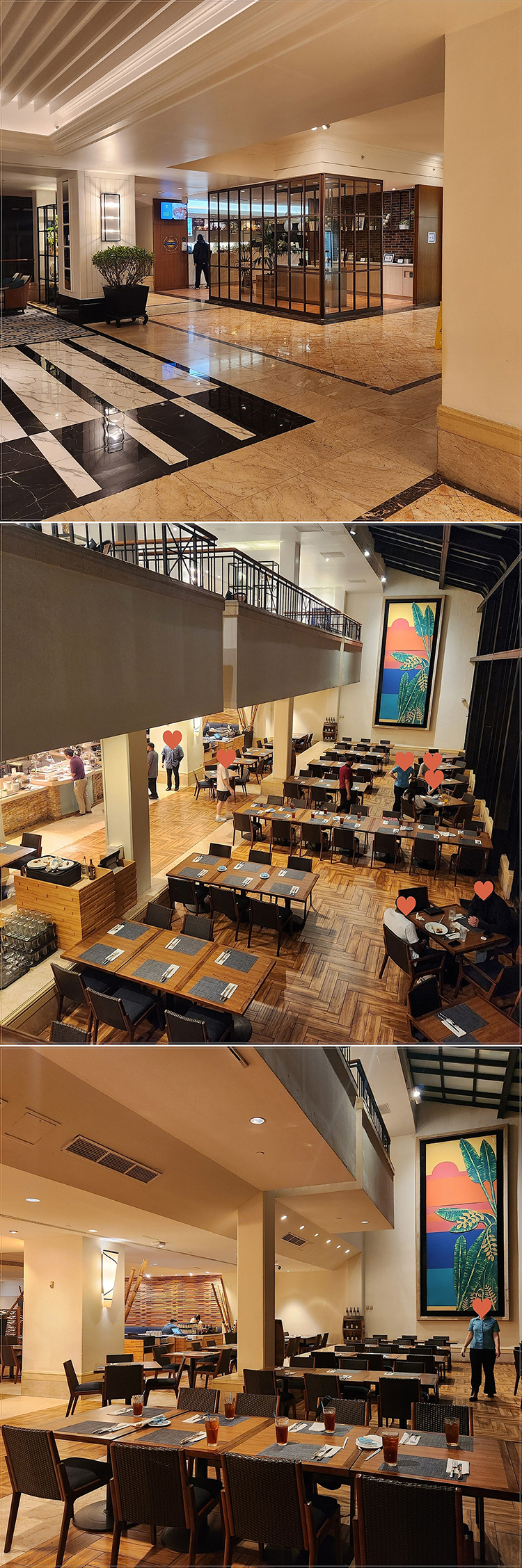 After parking, when you enter the hotel from the main entrance, you will see the Islander Terrace at the bottom of the stairs.