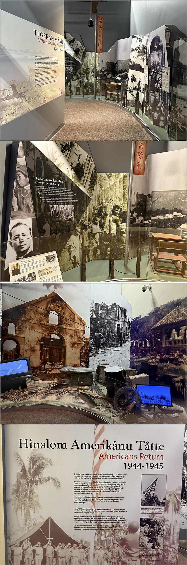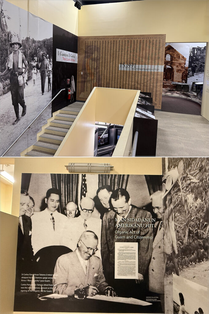 The history of Guam under Japanese colonization and the war’s effects are shown through videos and sound.