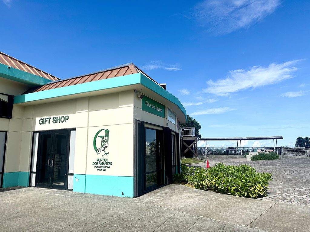 At Two Lovers Point, there are shops selling Made in Guam products and items designed with Guam motifs, as well as a drink stand.