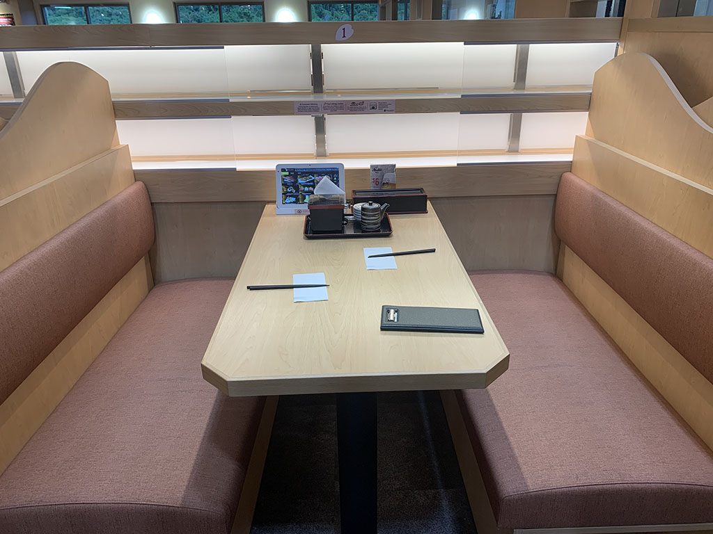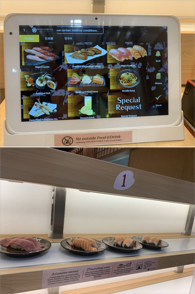Instead of a conveyor belt system, this restaurant uses a tablet-based ordering system, where sushi is delivered to your table.