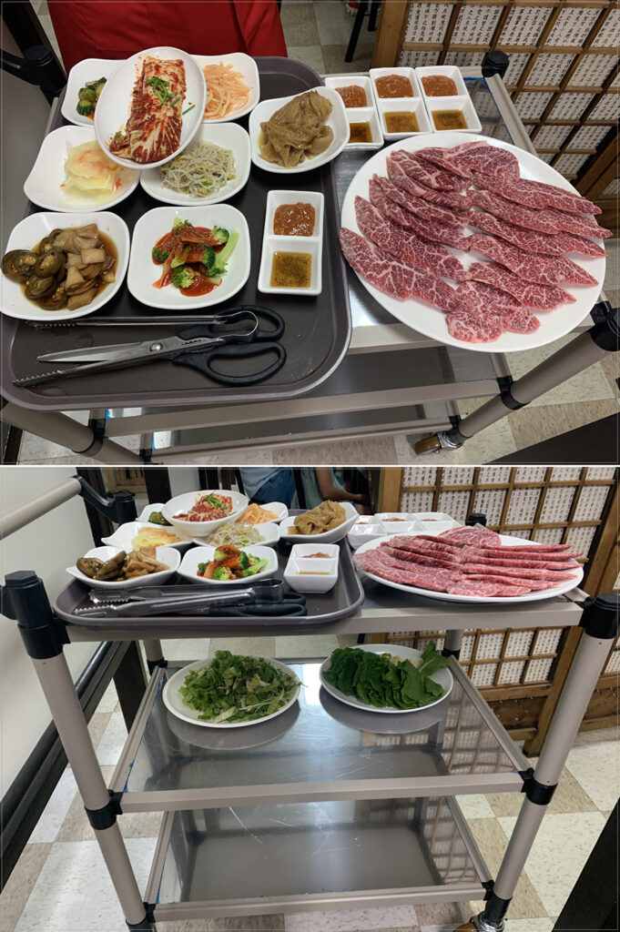 In particular, the aged kimchi and Korean-style salad complemented the richness of the meat very well.