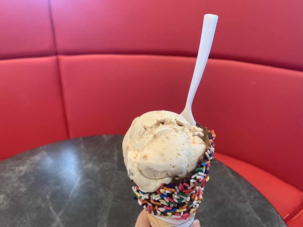Since it’s hot outside, be sure to enjoy your ice cream inside. The atmosphere is also great for chatting.