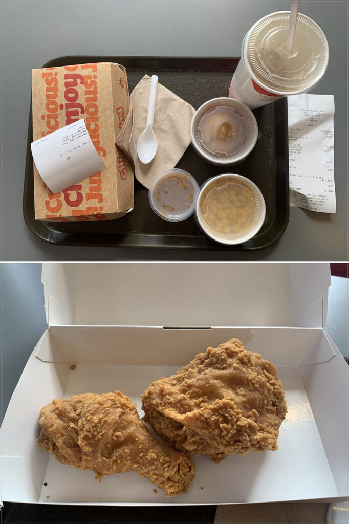 Most people were ordering the large bucket of chicken bundles, but since I was alone, I ordered the Chicken & Joy 2PC set.
