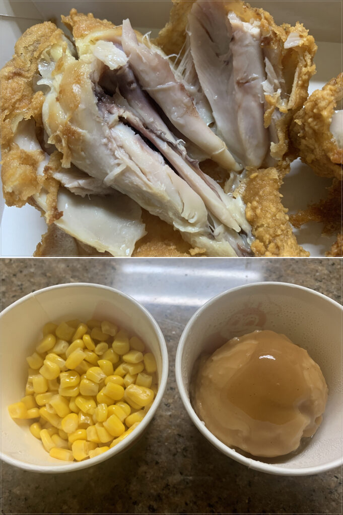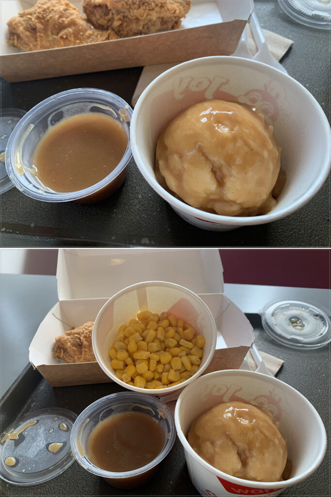 I could choose one or two sides, so I picked butter corn and mashed potatoes.
