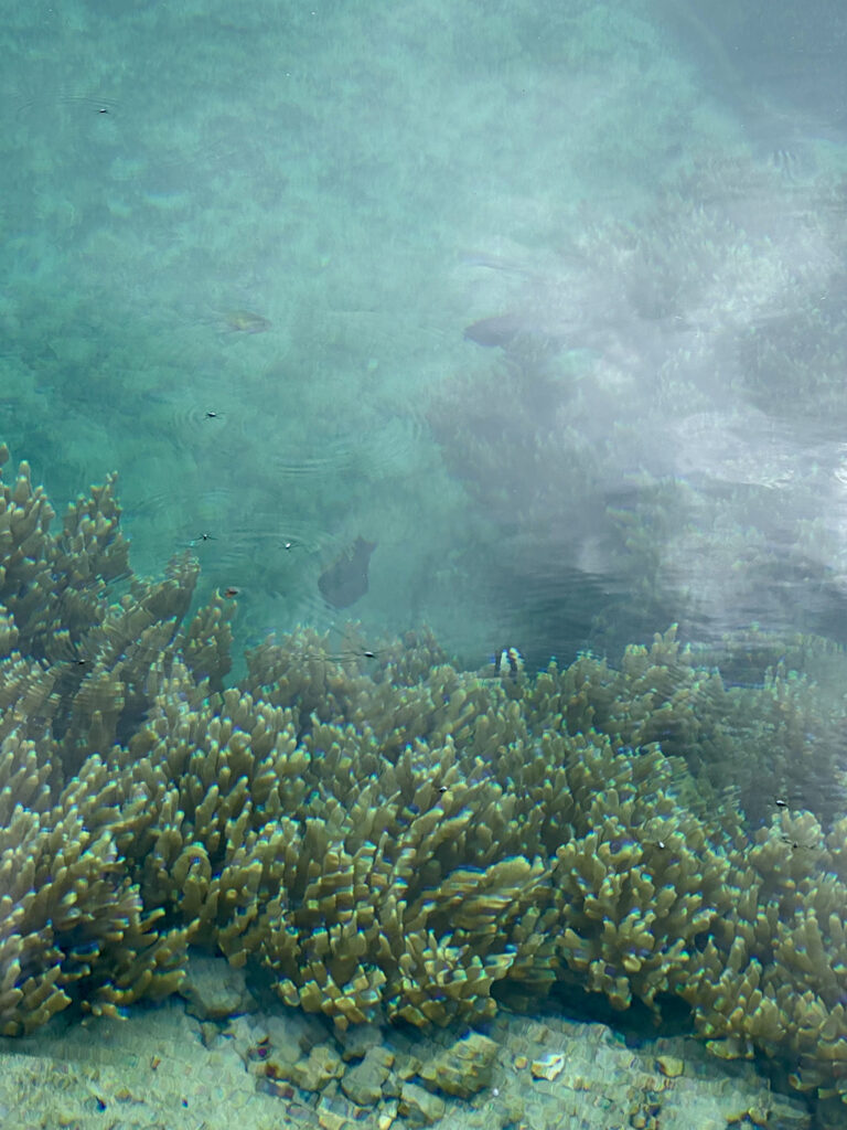 바닷물인 만큼, 바다의 얕은 곳에 있는 작은 열대어들이 기분 좋게 헤엄치고 있습니다. 너무 깨끗해서 물에 들어가고 싶어질 수 있지만, 실제로는 성인도 발이 닿지 않을 정도로 깊으며, 해삼이나 해파리가 있을 수 있어서 수영에는 적합하지 않으니 주의하시기 바랍니다.