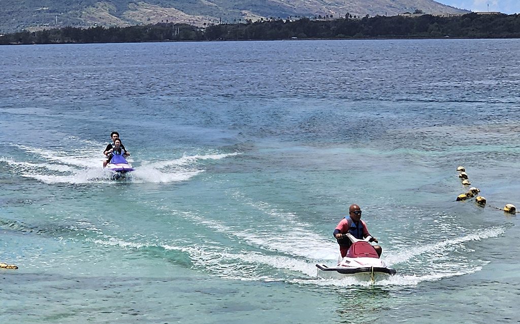 하갓냐 보트 베이슨에서 파라세일링을 준비하세요! 보트가 바다로 나아가는 동안, 괌의 숨겨진 서핑 스팟에서 파도를 타는 서퍼들을 발견하며 기대감이 고조될 거예요.