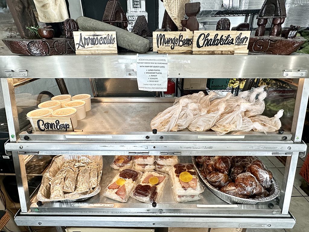 Inside, it looks like this. It’s a very small shop, and what the people of Guam come for are the delicious prepared dishes and sandwiches lined up near the entrance and cash register.