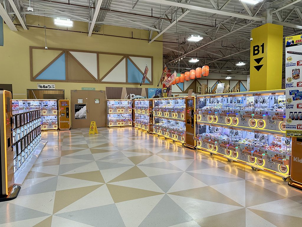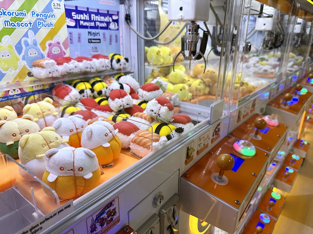 除了扭蛋之外,這裡也有夾娃娃機。只要瞄準想要的獎品,操作機械爪夾起來就有機會獲得。