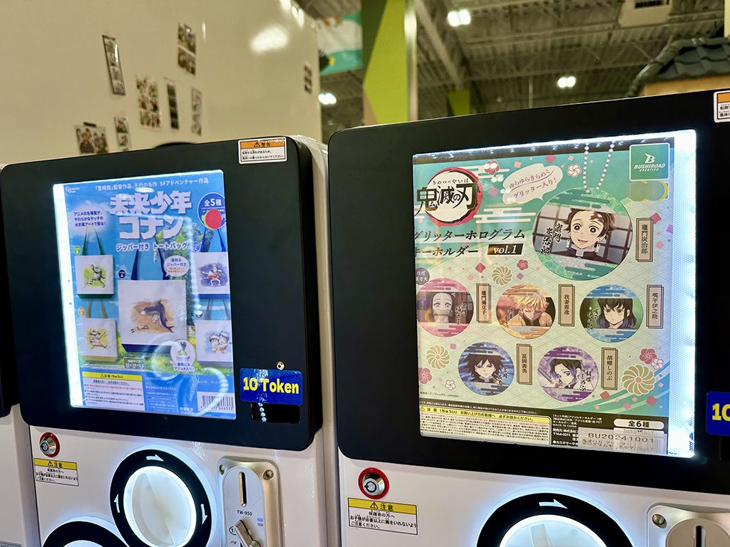 這裡大約有86台機器,其中有52台是扭蛋機。有些機器是以世界知名的日本動漫為主題,可以轉出角色鑰匙圈、束口袋、托特包等商品。