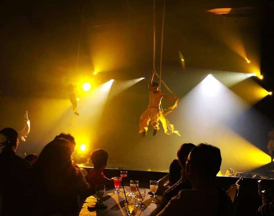 令人嘆為觀止的特技表演,表演者就在我們頭上盪來盪去,真的讓人為他們捏一把冷汗。