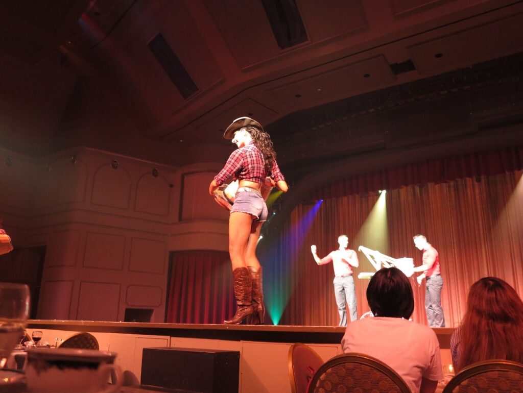 接著就是表演登場,因為太專心觀賞,只有偷拍幾張照片,真的很精采,就是美國百老匯大秀一樣,舞台規模也很盛大。